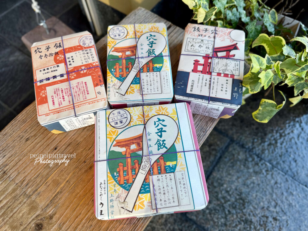 ▲ 上野商店的外帶便當是木質的便當盒+包裝紙。盒子設計也隱含「經典老店傳承」的意義 — 從明治時代(創業於 1901 年)起就一路販售便當,包裝就像是「旅行伴手飯」的傳統繼承。許多介紹都形容為「彷彿老式便當盒(アルマイトの弁当箱)般,能保存穴子飯冷卻後的風味」。這樣的木質便當盒不只實用,更有一種「歷史感/傳統感」,搭配店家自身超過百年歷史的背景,整體包裝就像是在強調它的「正統/經典」身份。