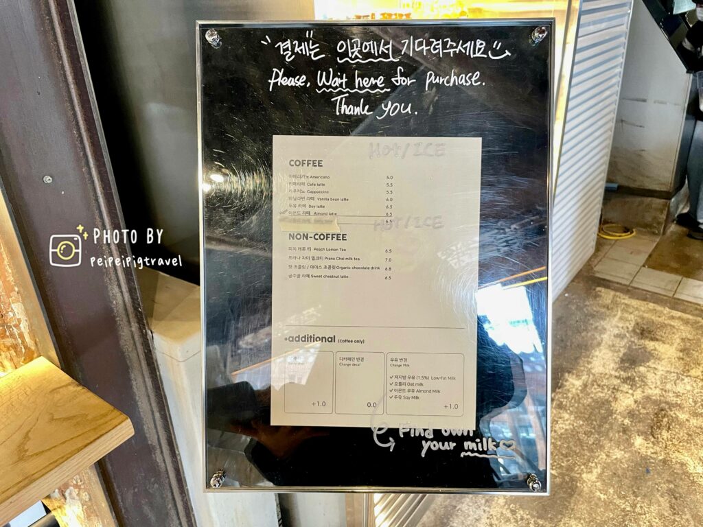 ▲ 麵包價位落在₩3000~₩15000不等。飲品有咖啡、茶、果汁可以選。