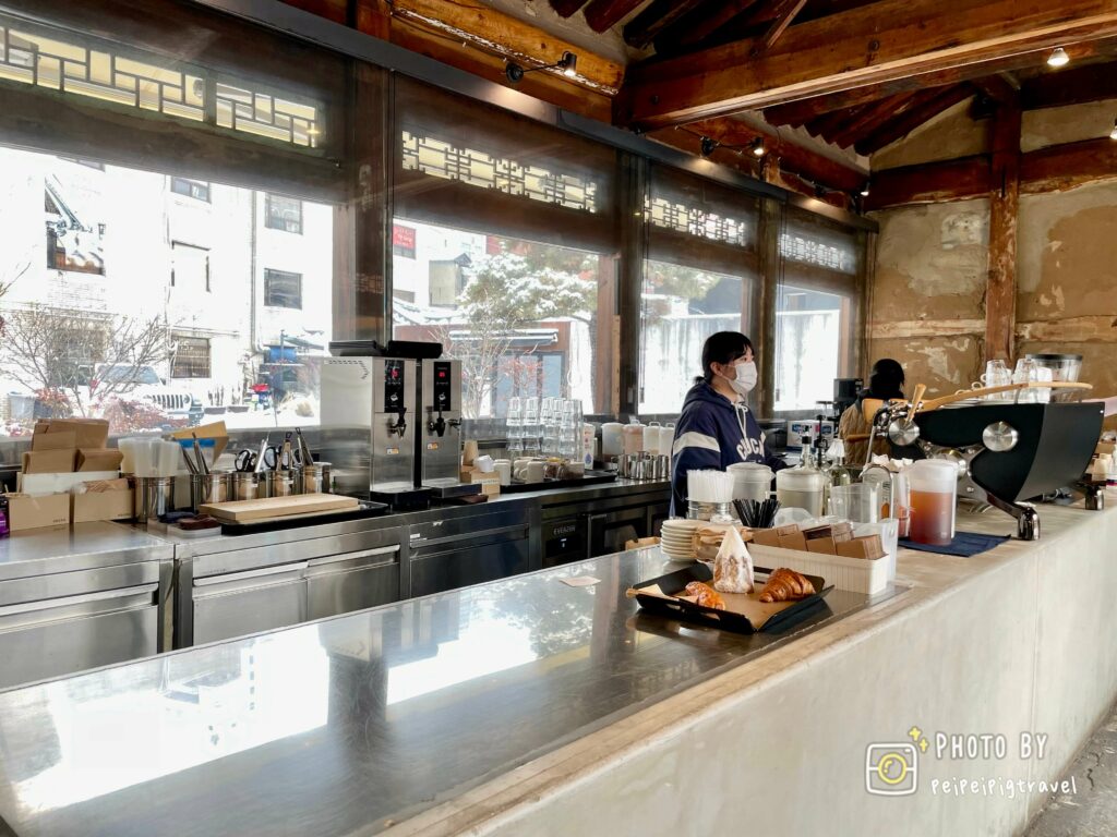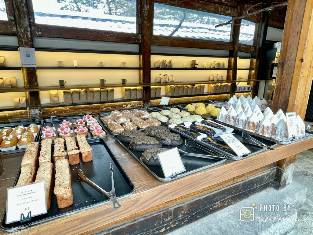 ▲ 店內空間是韓屋的建築,旁邊就是景福宮,距離北村韓屋村也非常近,雖然是以咖啡起家,店內賣的烘焙麵包人氣特別高,種類也非常多樣,連當地人也非常喜歡。
