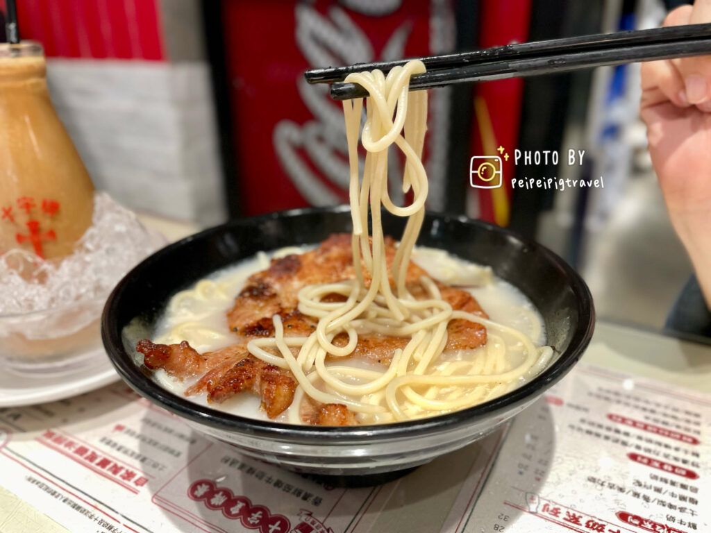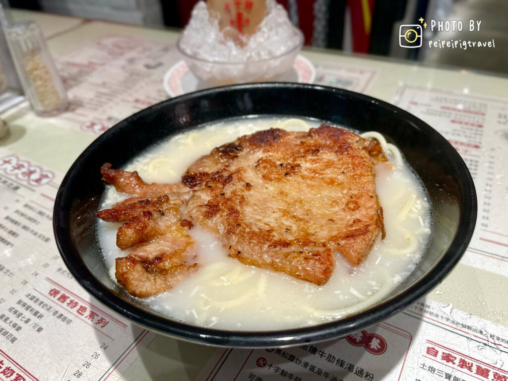 ▲ 湯底加入了牛奶後變得香濃順滑。意粉很像我們平常在吃的義大利麵。比較不吸湯汁。而豬扒的外皮香脆、厚薄適中,其實很像我們的台式便當上會有的肉。