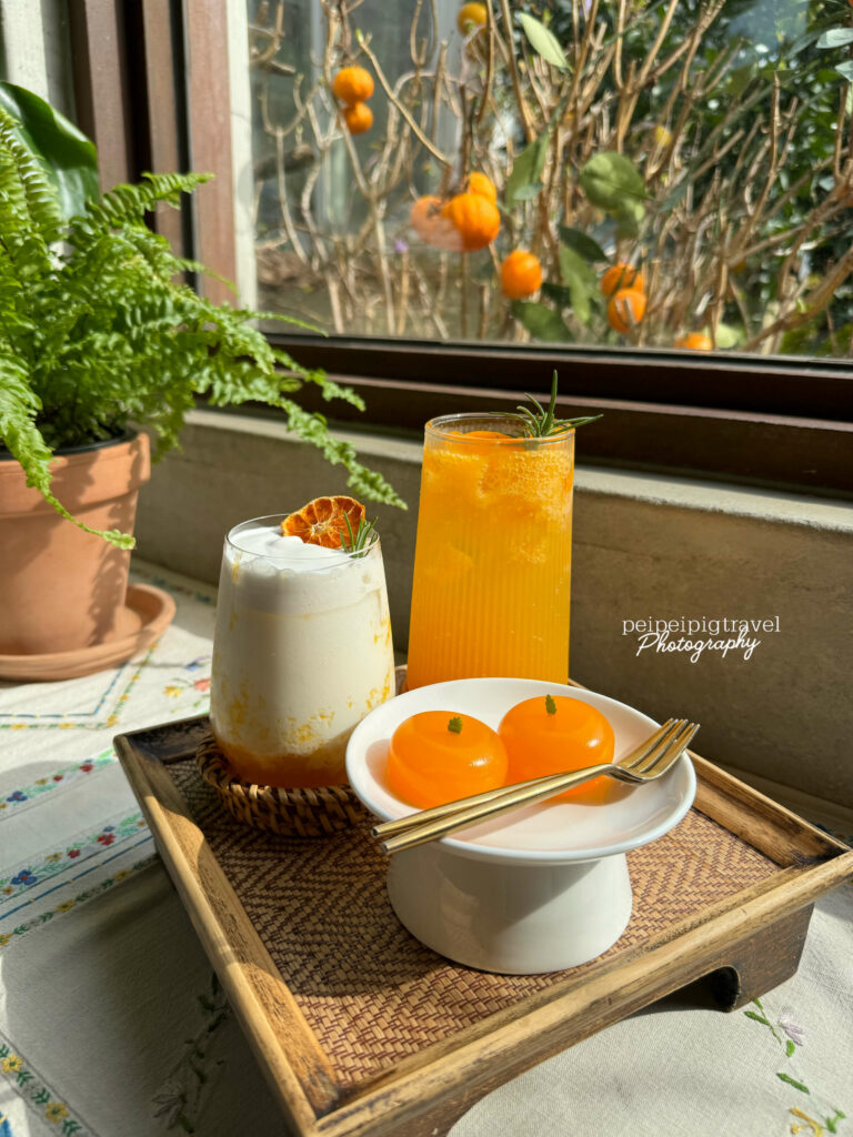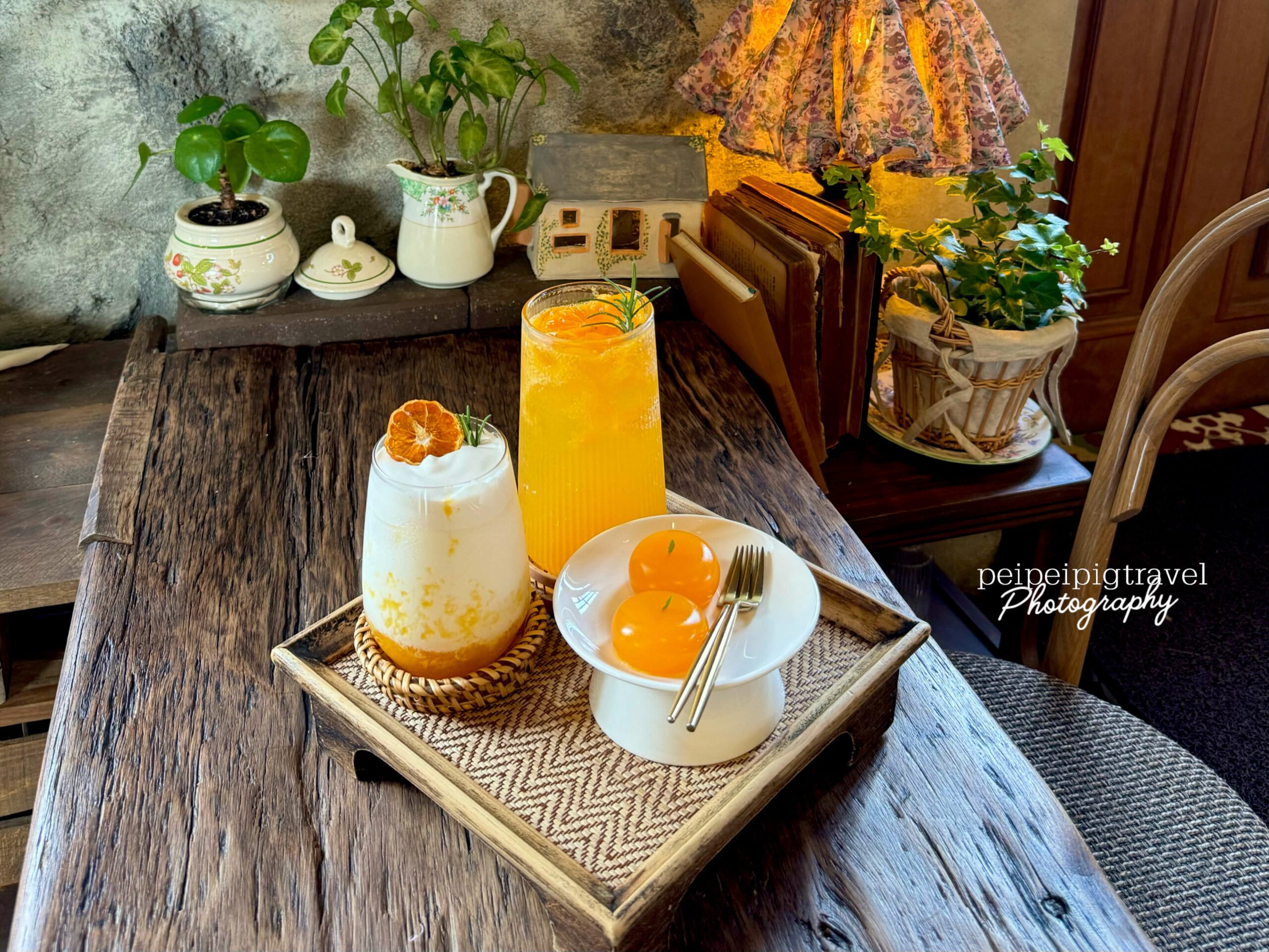 ▲ 這間 Cafe Tangerine Flower Attic 在小紅書及Instagram上都很夯。餐點放在別緻的木製桌子上,美味直接升級。