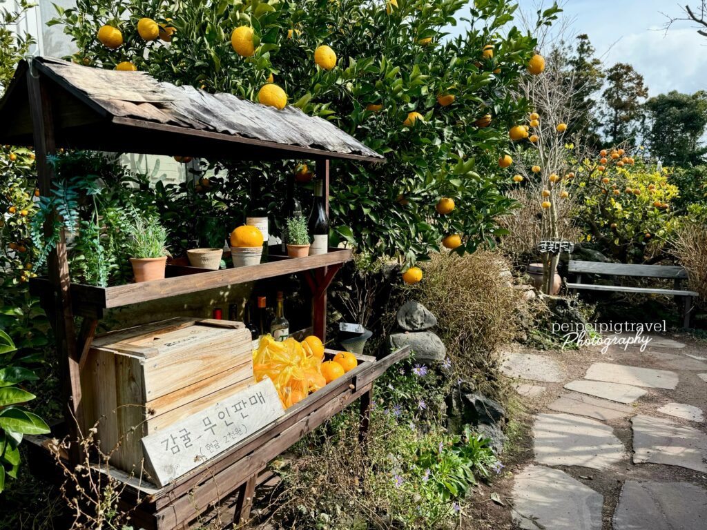 ▲ 位於西歸浦的橘子庭園咖啡廳。園區內有滿滿的橘子園。不過這裡的橘子僅供拍照,沒有提供摘橘體驗!