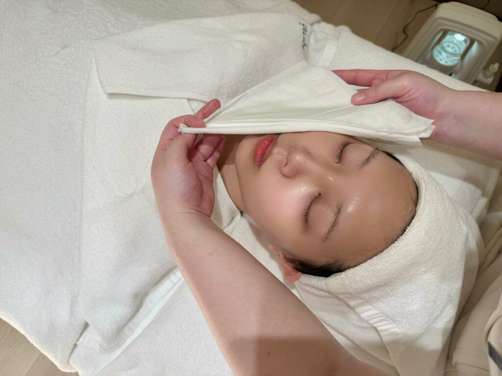 敷上面膜後還會蓋上保濕用的鋁箔面膜紙,讓肌膚達到最佳吸收。