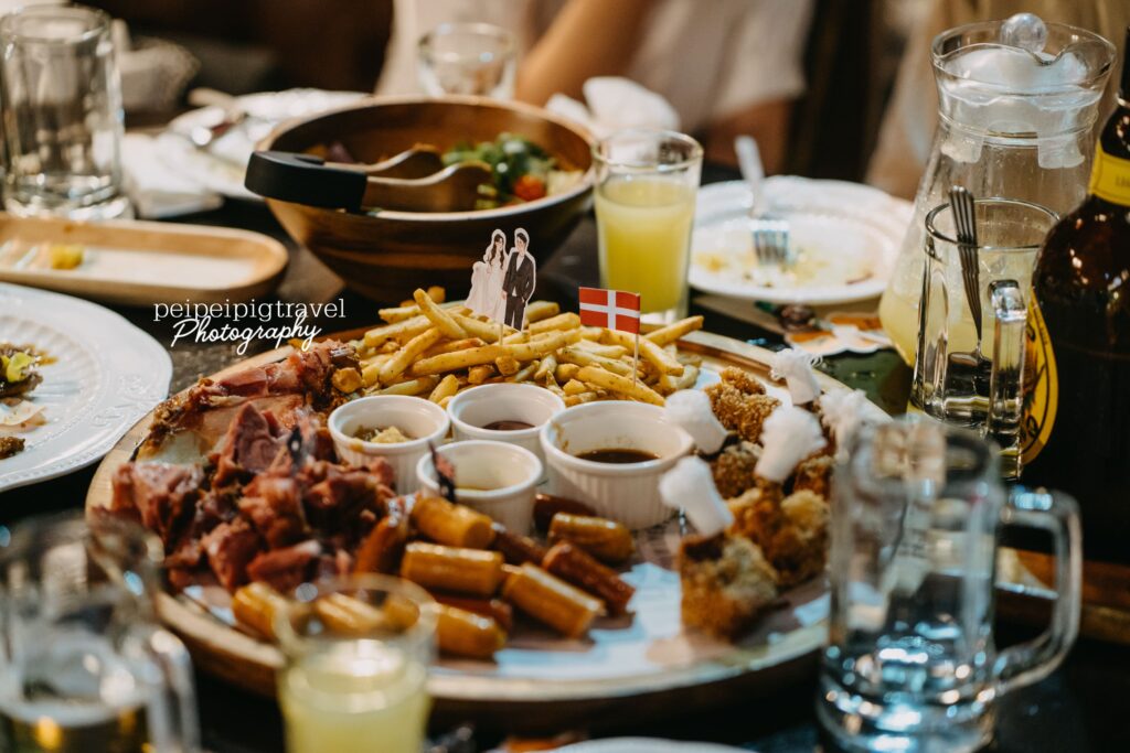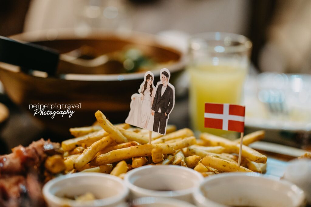 ▲ 金色三麥的婚宴菜色跟一般自己到餐廳去吃的會有些微不同呦!等於保留了他們家的經典菜色,也同時提供習慣傳統婚宴口味的長輩們一些中式料理。(食物上的頭像插旗是我們自己提供給餐廳的呦!)☺︎ 為金色三麥的經典菜色。
