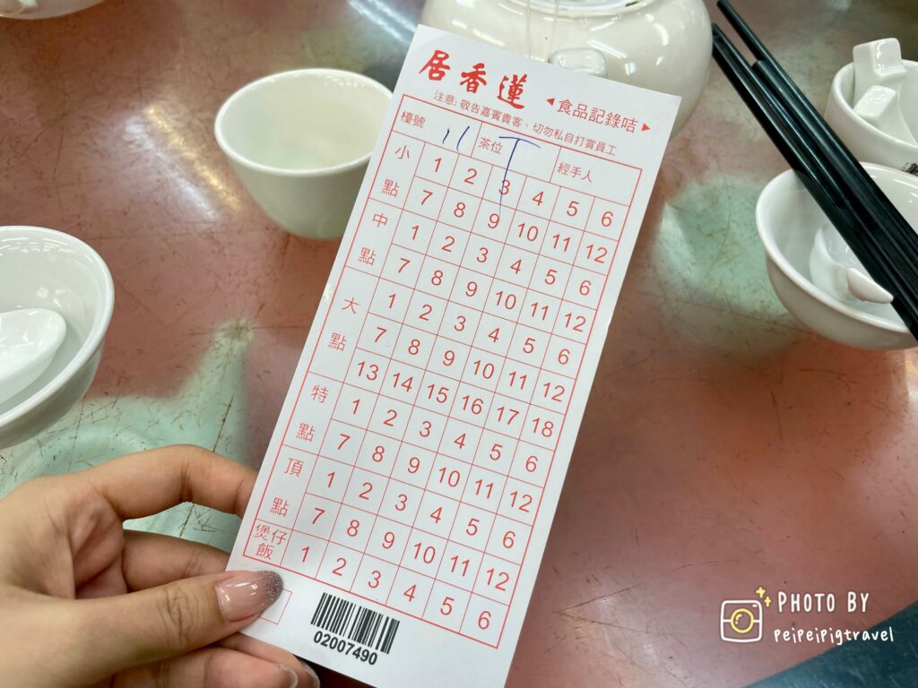 ▲ 點餐方式很傳統。每位客人都會酌收16港幣的茶水費, 可以續。倒茶後會給一張紀錄卡,使用記錄卡劃單。