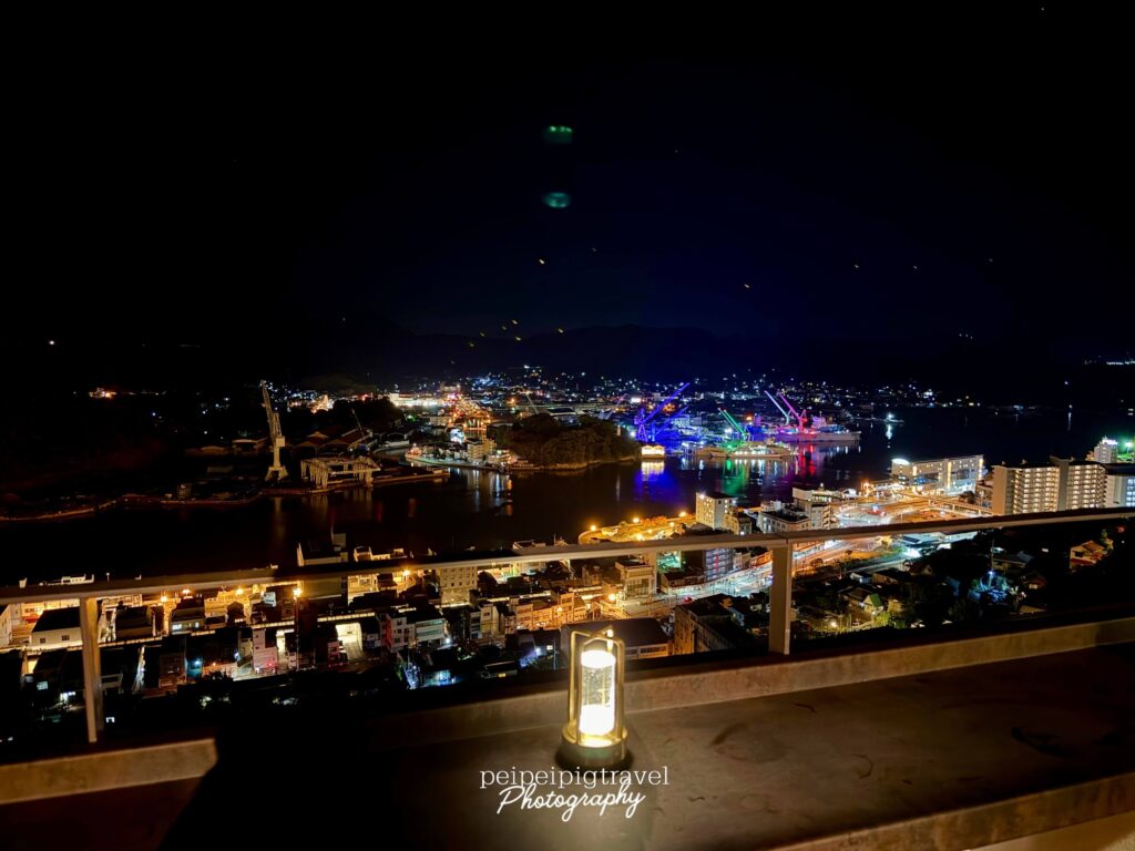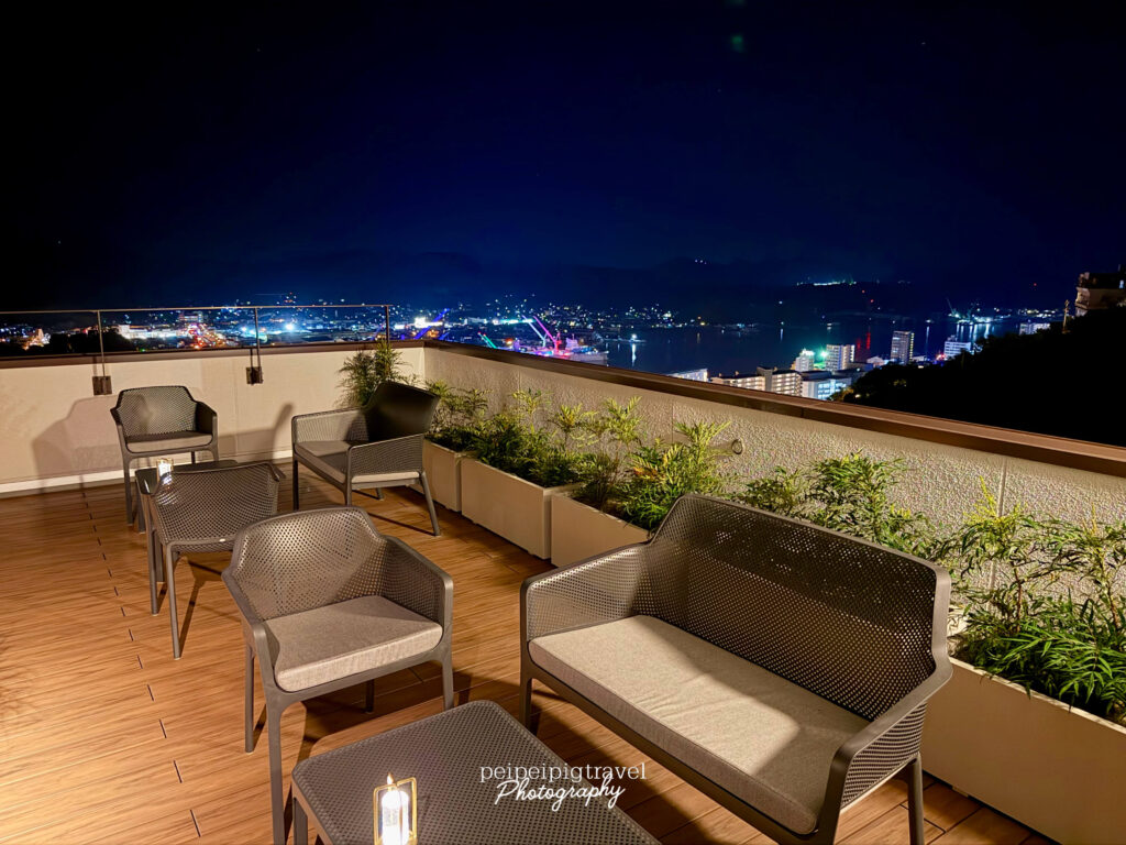▲ 設有戶外座位區。柔燈、輕音樂、吹得到海風,還看得到尾道夜景。
