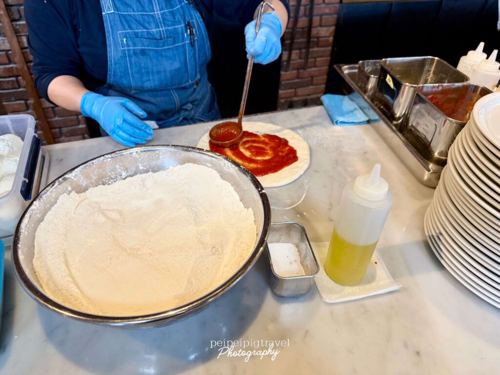 ▲ The RESTAURANT 的餅皮使用新鮮手工揉製麵糰,可以看到現場製作方式。並採用磚窯高溫烤製的方式,使外層微焦酥脆,內層仍保留彈性和柔軟感。
