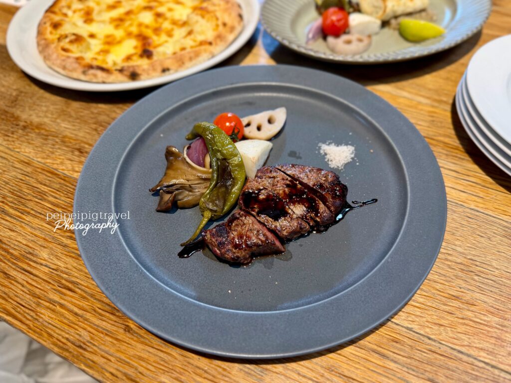 「峠下牛」是日本廣島縣或尾道附近知名的優質牛肉品種,「フィレ肉」就是菲力(牛腰內肉、Tenderloin)部位。使用炭火燒烤,表面略帶微焦香,肉質細嫩柔軟,入口即化。