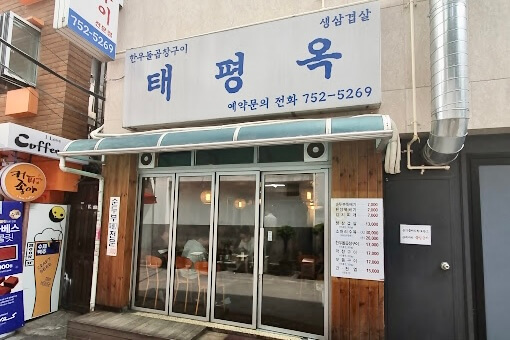 Taepyeongok是仁濟大學首爾白醫院停車場附近的嫩豆腐鍋店。位於乙支路3街站(Euljiro 3-ga)的12號出口,出口出來左轉直走,會看到一個咖啡胡同,走到盡頭會看到Taepyeongok了。約有3分鐘的步行路程。店舖的入口雖小,但向內拉長。