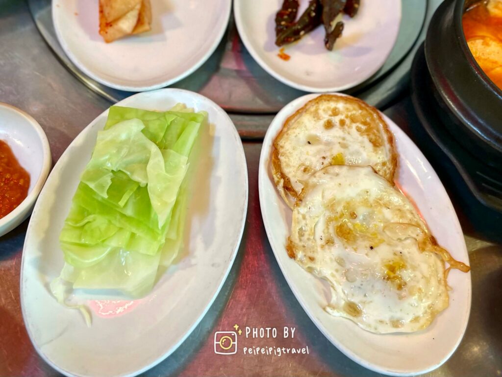▲ 小菜有韓國家常菜的感覺,而且每人贈送一個煎雞蛋。